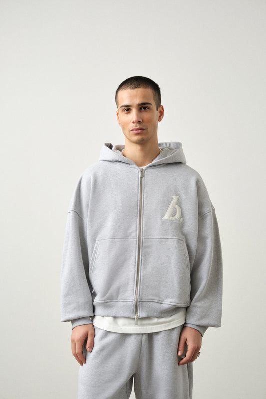 STAMP ZIP-UP HOODIE - GREY MARL