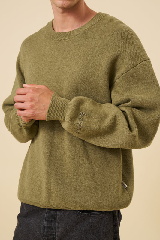 OPEN COLLAR ACID WASH KNIT - BROWN