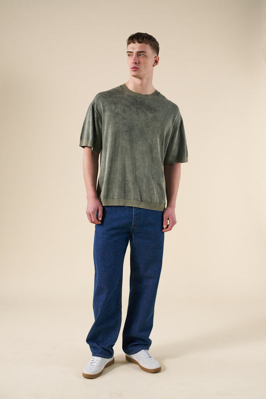 ACID WASHED CREWNECK SWEATER - AGAVE