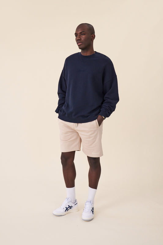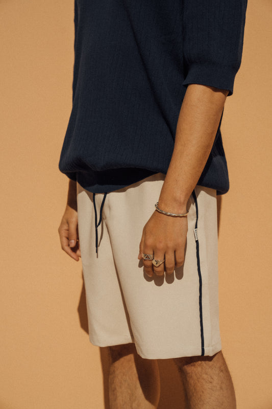 STRIPE TRACK SHORTS - BEIGE / NAVY