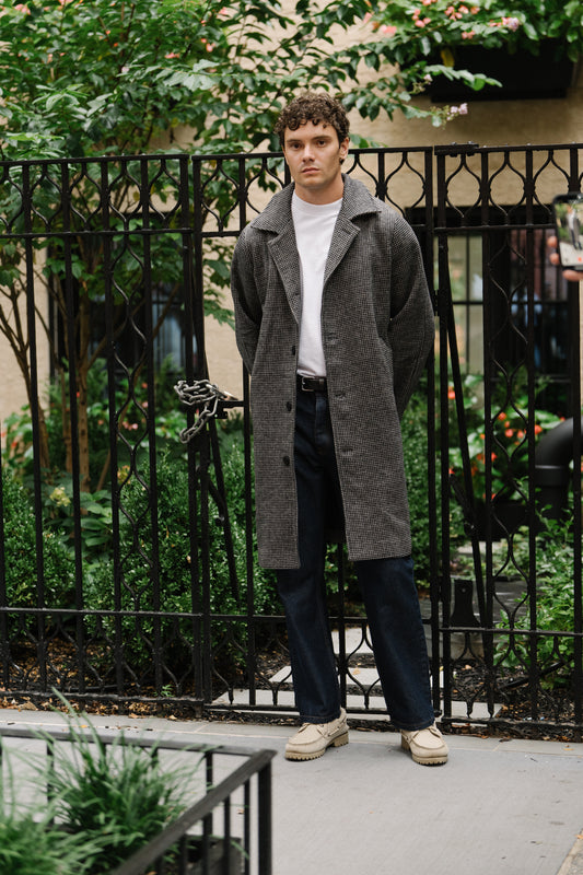 TRIBECA DOGTOOTH WOOL COAT - CHARC BLACK