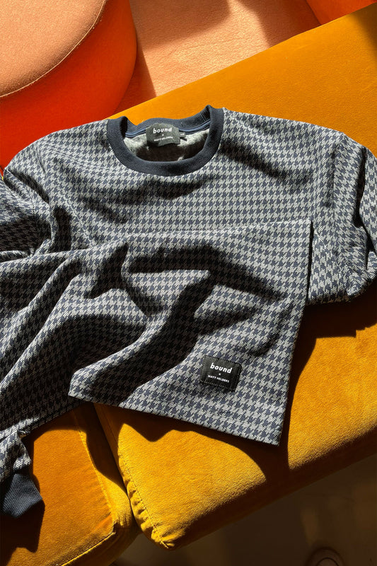 NAVY DOGTOOTH LONGSLEEVE TEE
