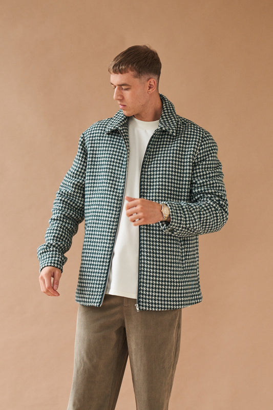 MAXIM DOGTOOTH WOOL COACH JACKET