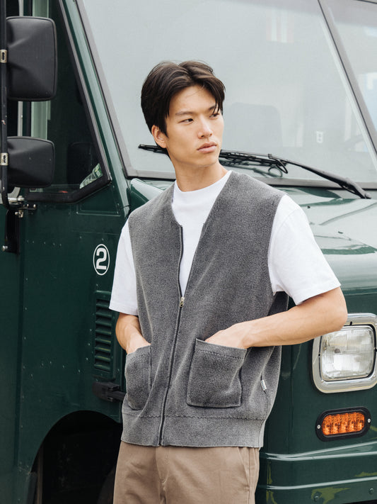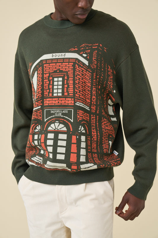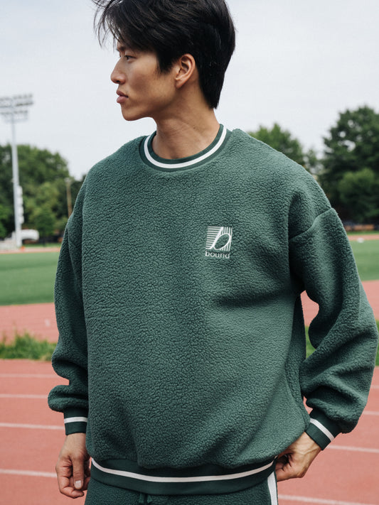REVERSE FLEECE GRID SWEATER - BOTTLE GREEN