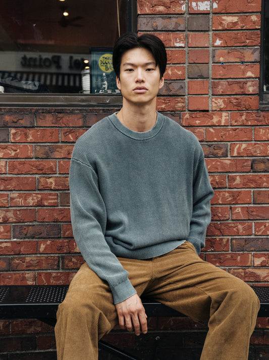 FISHERMAN RIBBED KNIT SWEATER - ACID WASHED NAVY