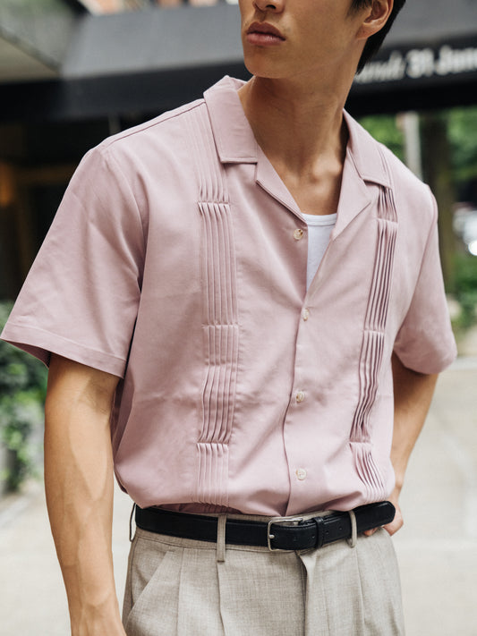 STRIKER PLEATED BOWLING SHIRT - ROSE TENCEL