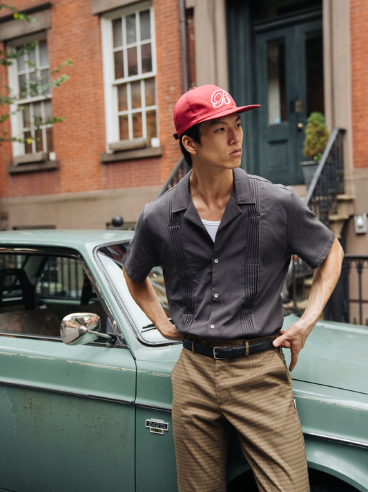 STRIKER PLEATED BOWLING SHIRT - COAL TENCEL