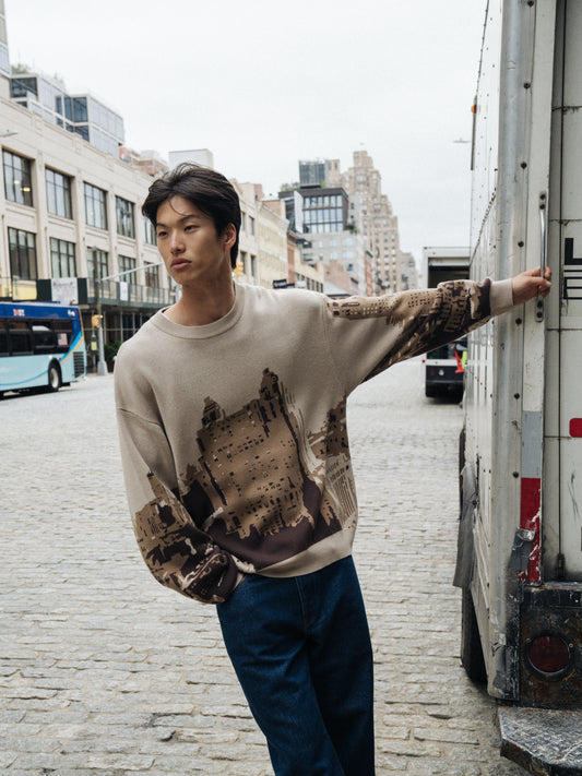 ACID WASHED CREWNECK SWEATER - AGAVE