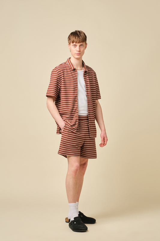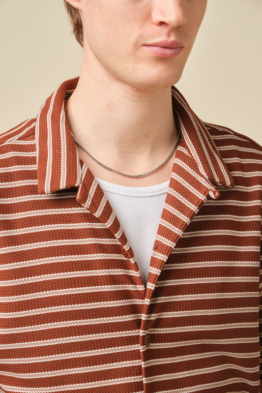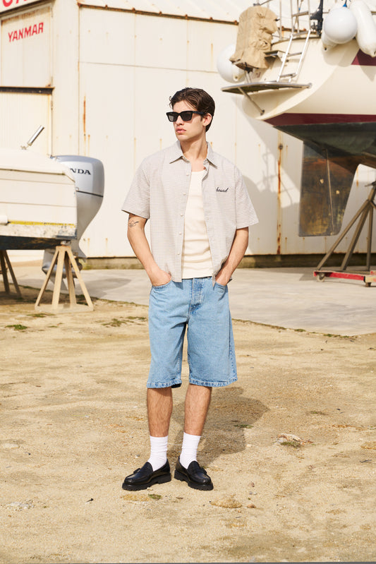 PORTO HERRINGBONE STRIPE SHIRT - CREAM