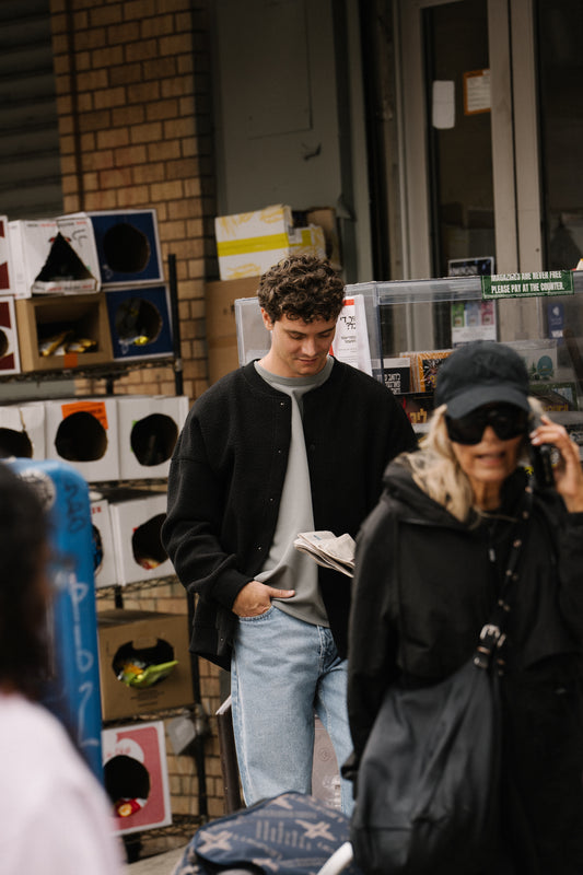 BOMBER FLEECE CARDIGAN - BLACK