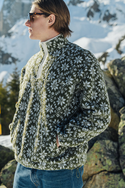 GREEN PANEL RETRO FLEECE PULLOVER