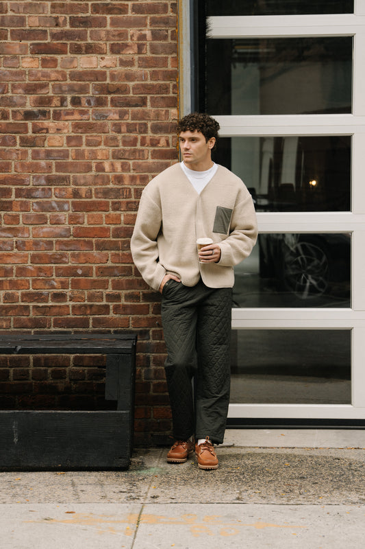 POCKET FLEECE CARDIGAN - SAND