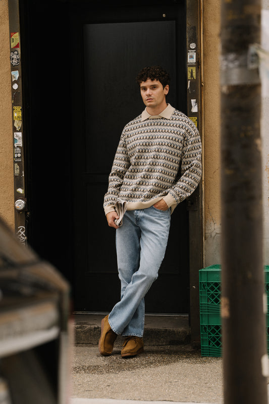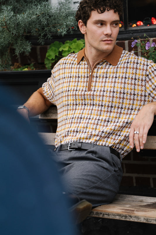 FINN 1/4 ZIP DOGTOOTH KNIT POLO