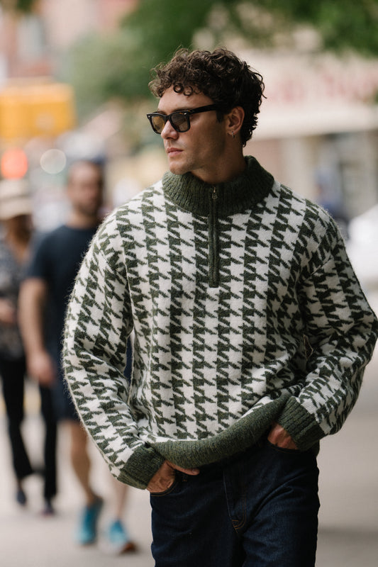 DOGTOOTH ALPACA 1/4 ZIP KNIT - MOSS