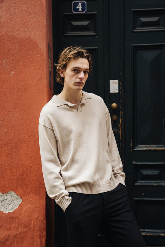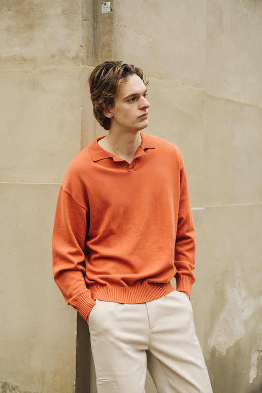 TROPEZ KNIT POLO SWEATER - ORANGE