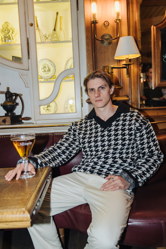 DOGTOOTH WOOL V NECK KNIT SWEATER