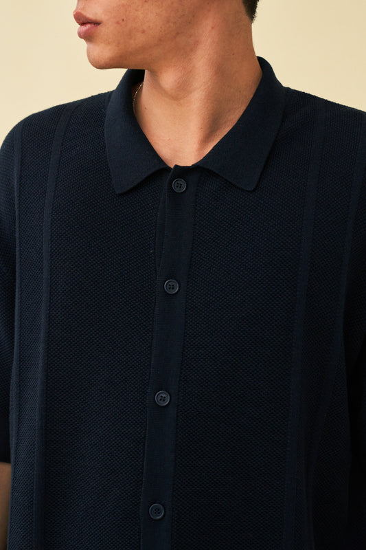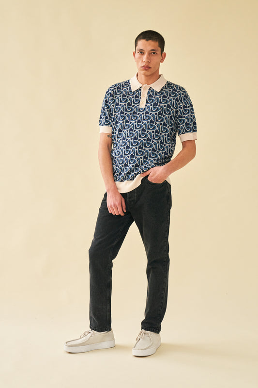 OMBRE CABLE KNIT POLO - NAVY / TAN