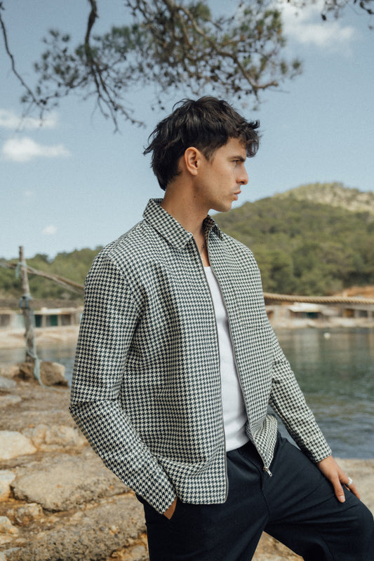 SUTTON DOGTOOTH ZIP BOMBER JACKET
