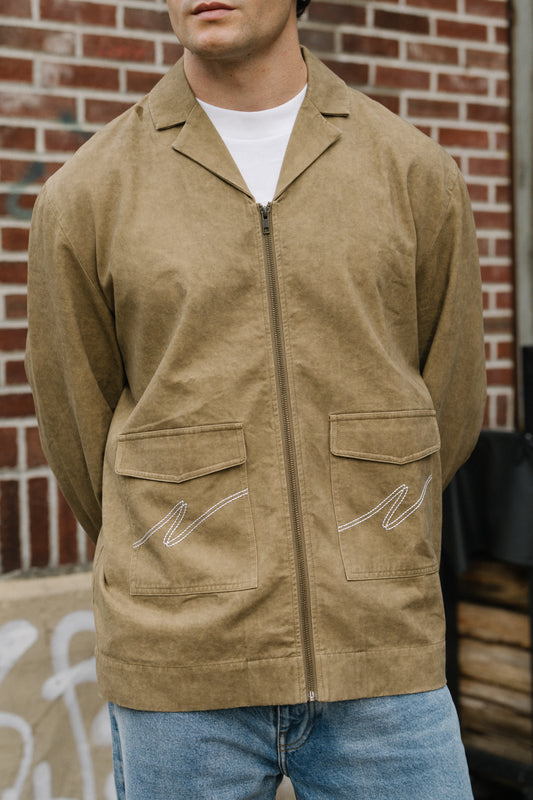 ACID WASH WORKWEAR ZIP UP - BROWN