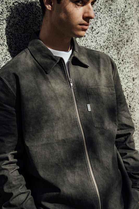 CHARCOAL ACID WASH ZIP OVERSHIRT