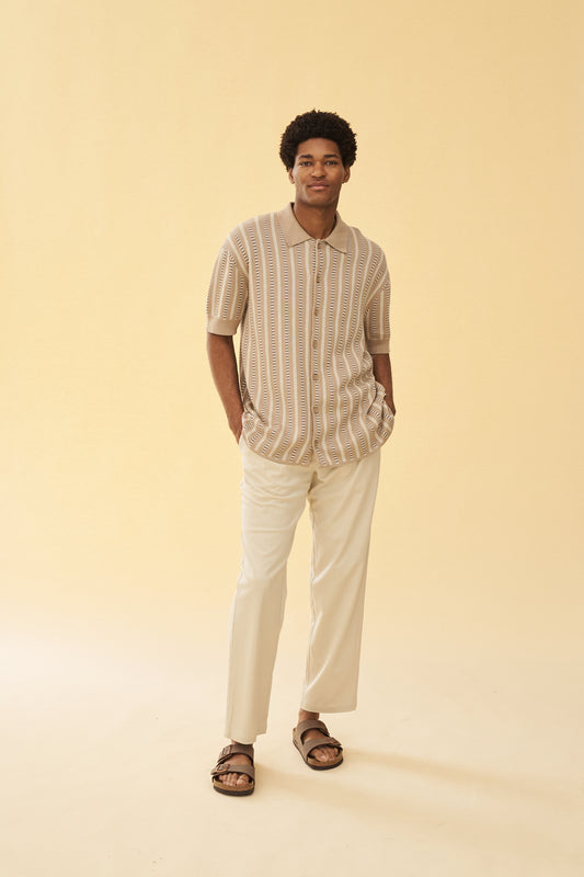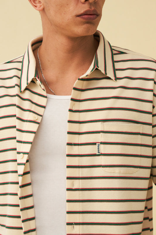 ECRU STRIPE WAFFLE POLO SHIRT
