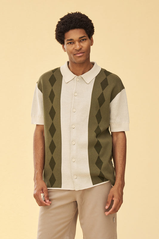 OLIVE PAISLEY RAYON SS SHIRT