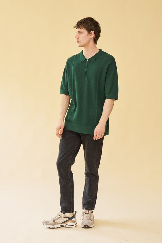 THEODORE 1/4 ZIP HEAVY KNIT POLO - GREEN