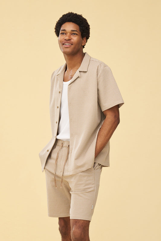 BEIGE DOGTOOTH JACQUARD SHORTS