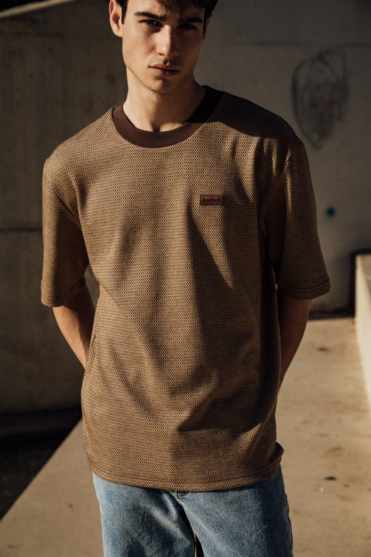 PEACHED STRIPE TEE - BROWN & YELLOW