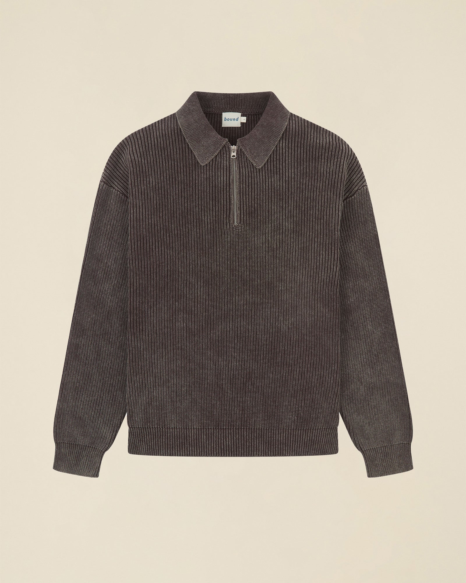 ACID WASH HALF ZIP PULLOVER - BROWN