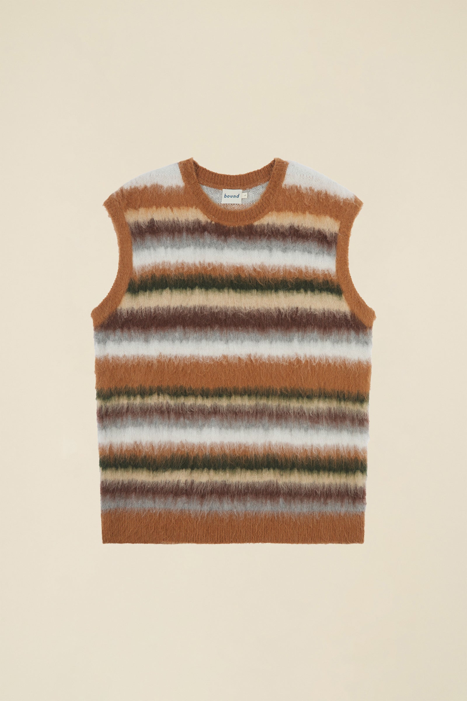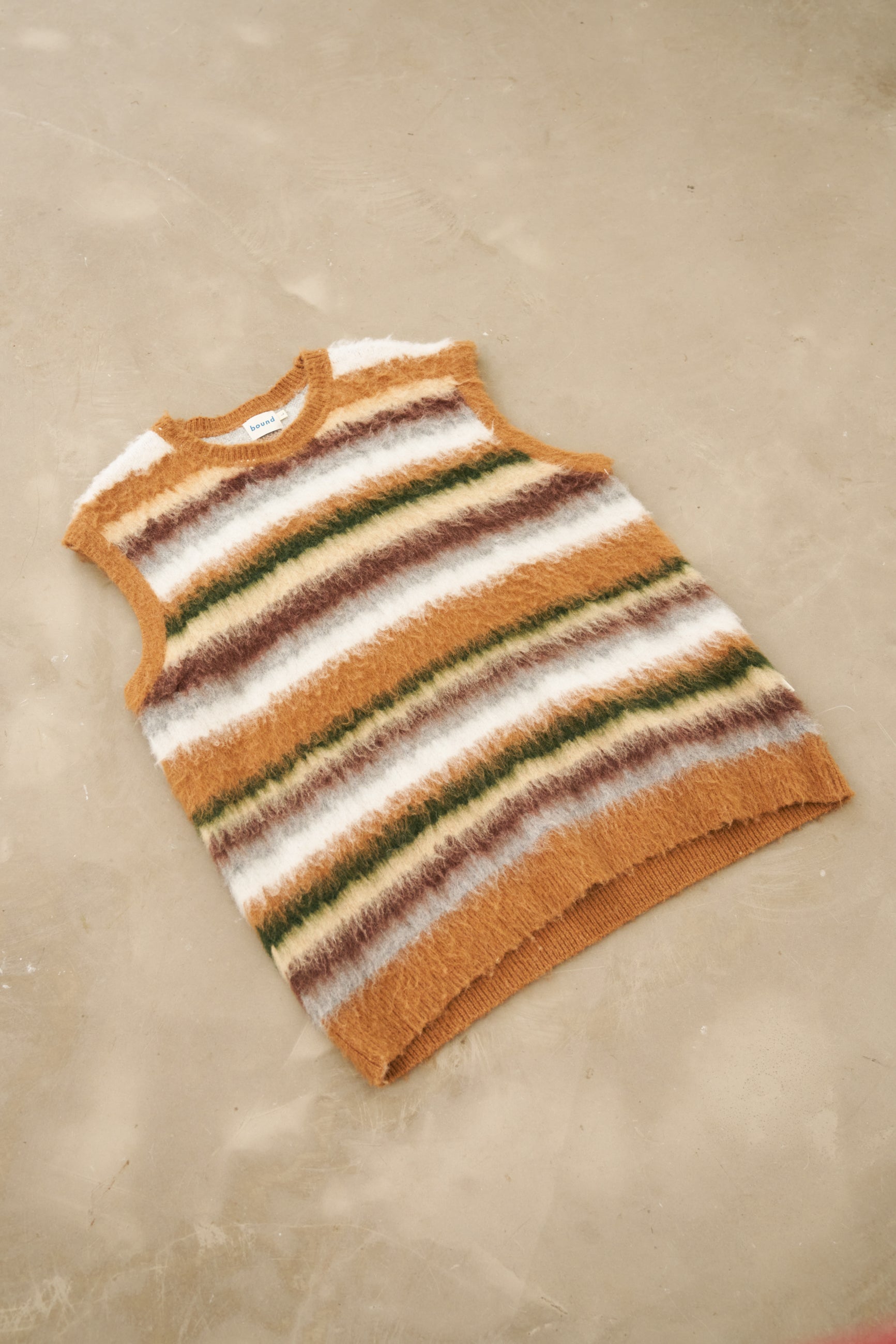 Custom drawn stripes bleed effect on a 47% Acrylic, 22% Nylon, 20% Wool, 8% Alpaca yarn.