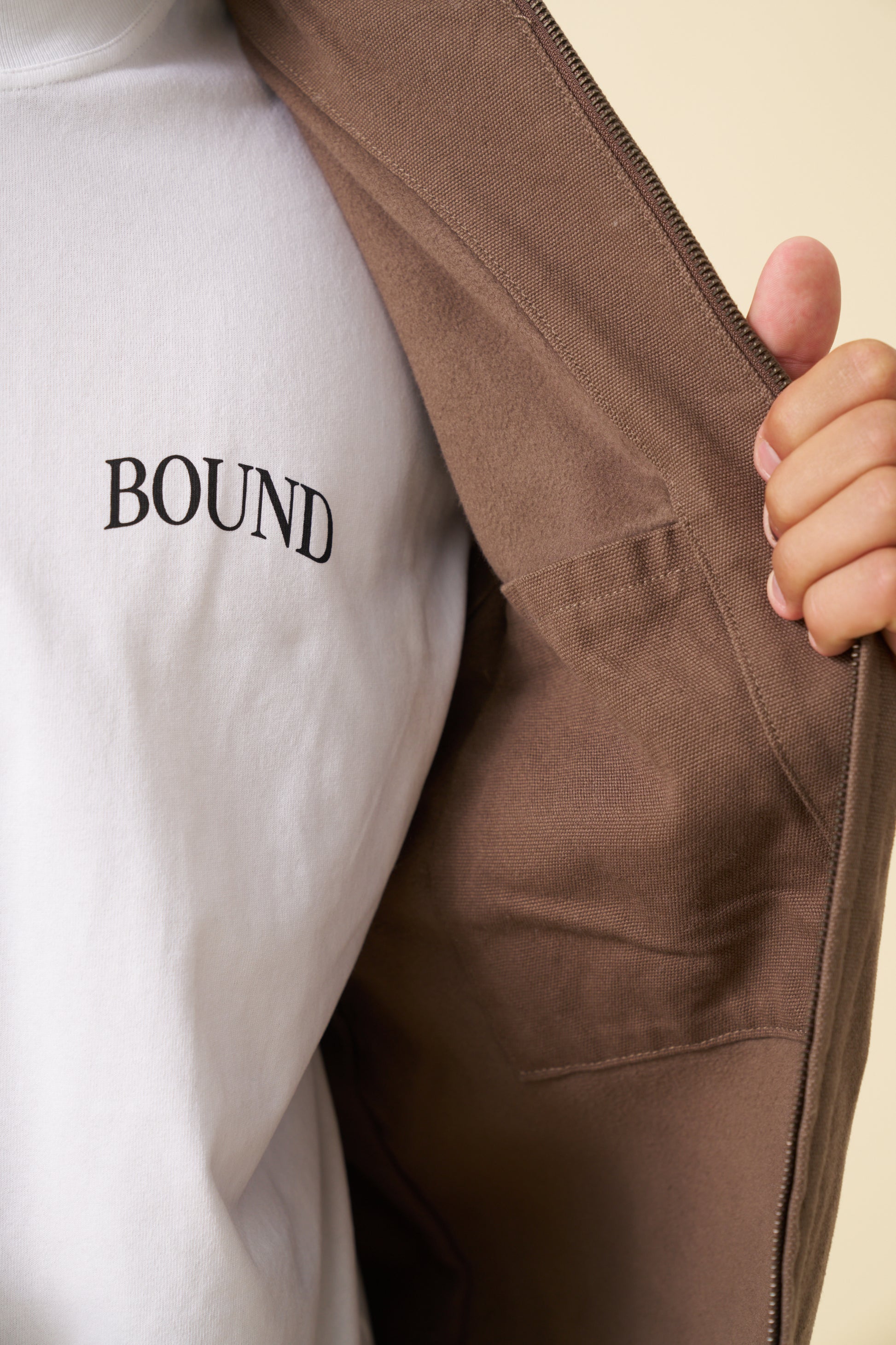 Heavy weight and durable, 470 GSM - 100% cotton duck canvas, polyester quilted lining. Ribbed collar, internal pocket, 2 patch pockets & 2 side pockets*, YKK zip.