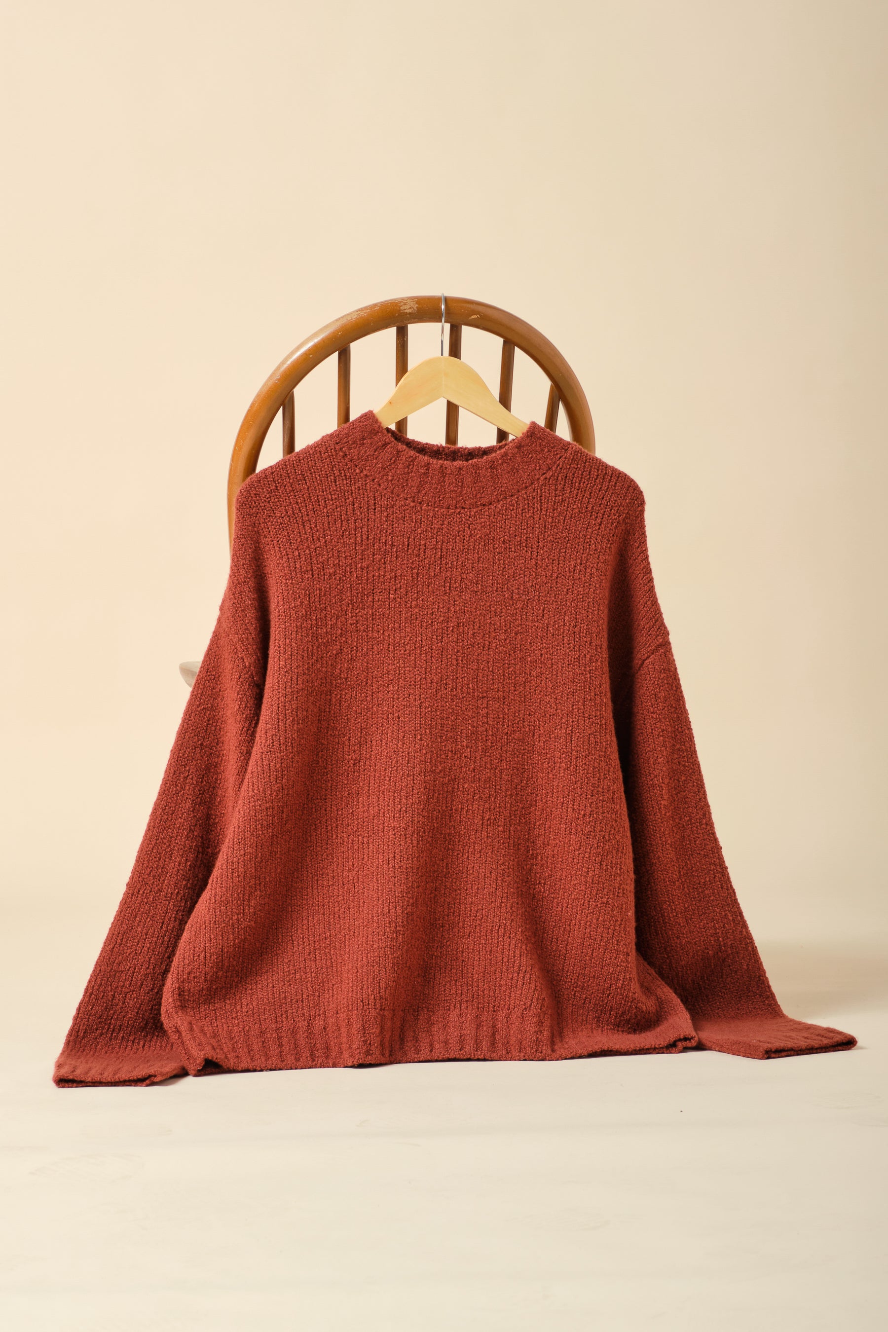 Model is 6ft (184cm) and wears a size L in the knit sweater. It fits like our classic knitwear sweaters with an oversized relaxed style fit. Size down for a more fitted look.