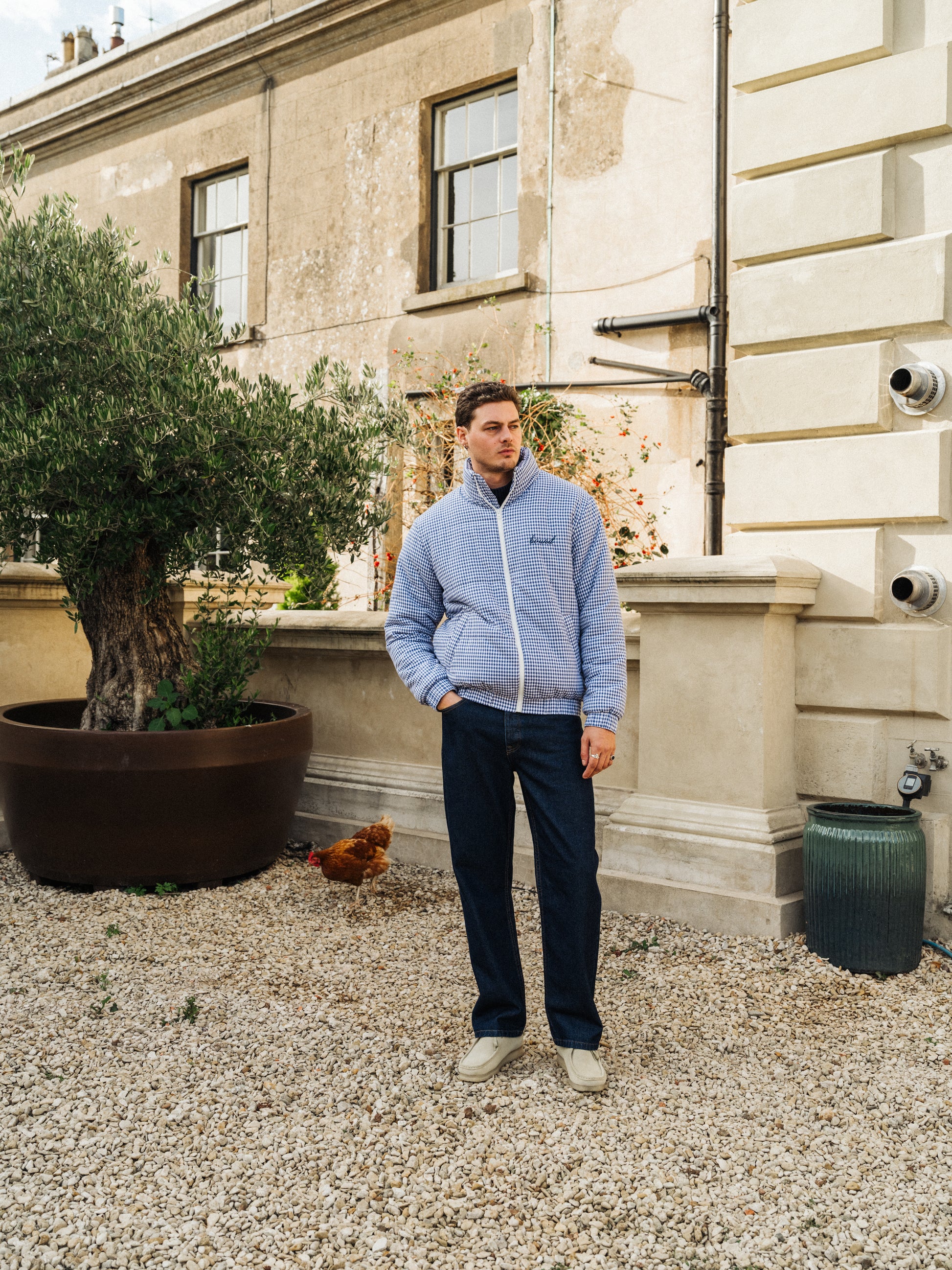 DOGTOOTH GINGHAM BLUE PUFFER COAT