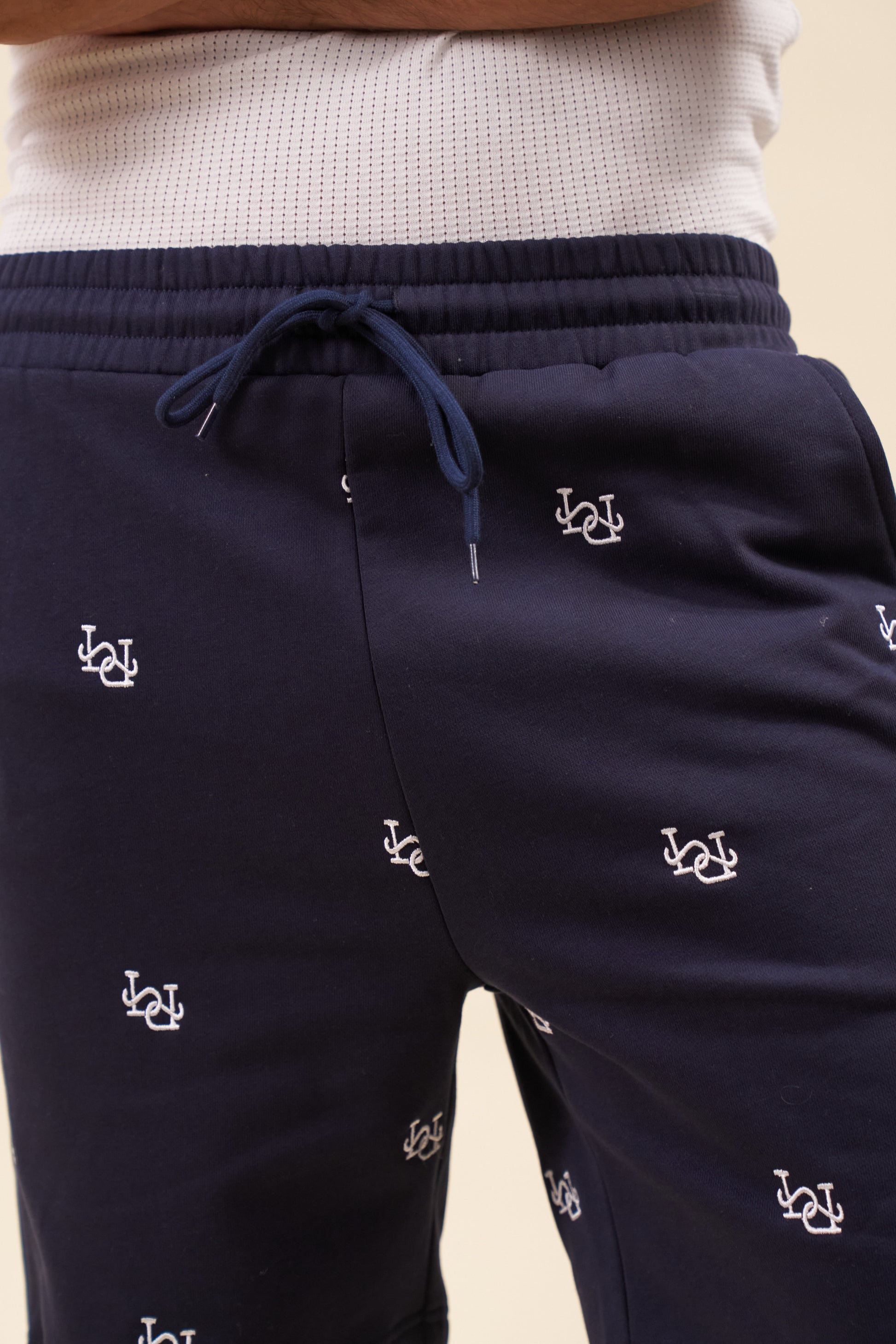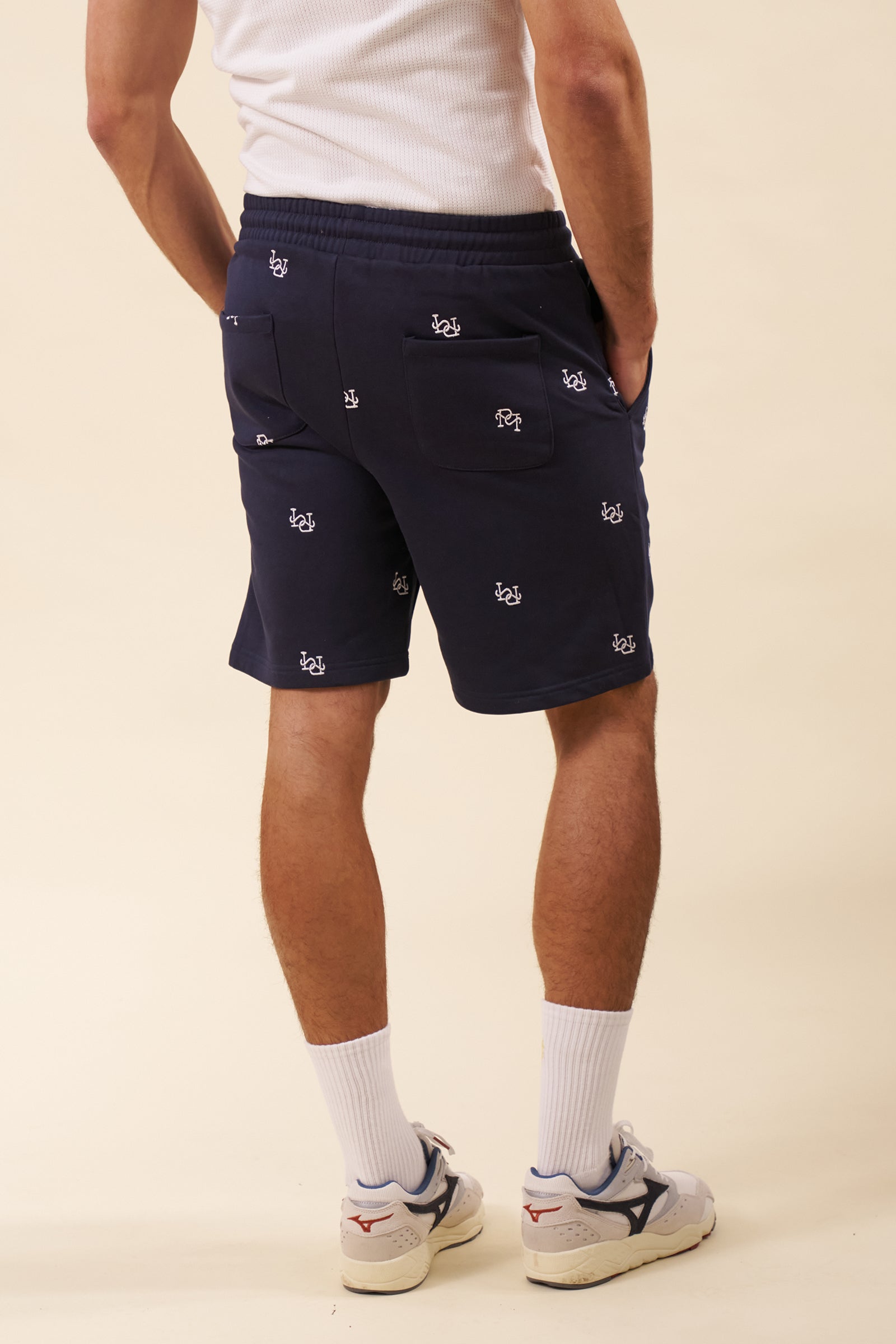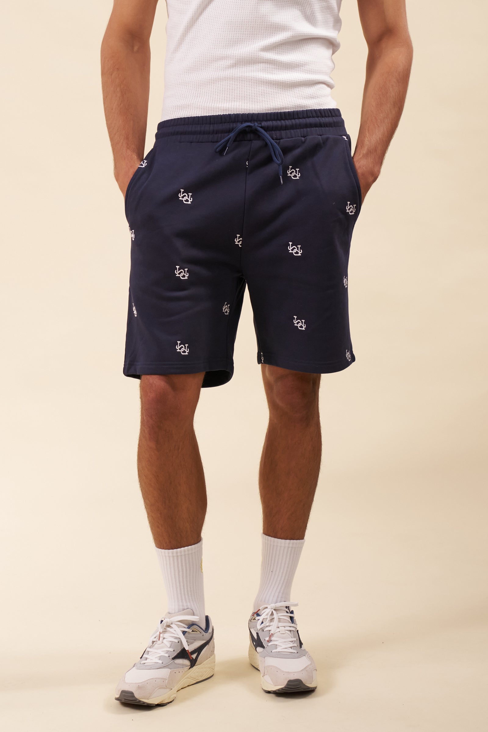 LINK EMBROIDERY SWEAT SHORTS - NAVY