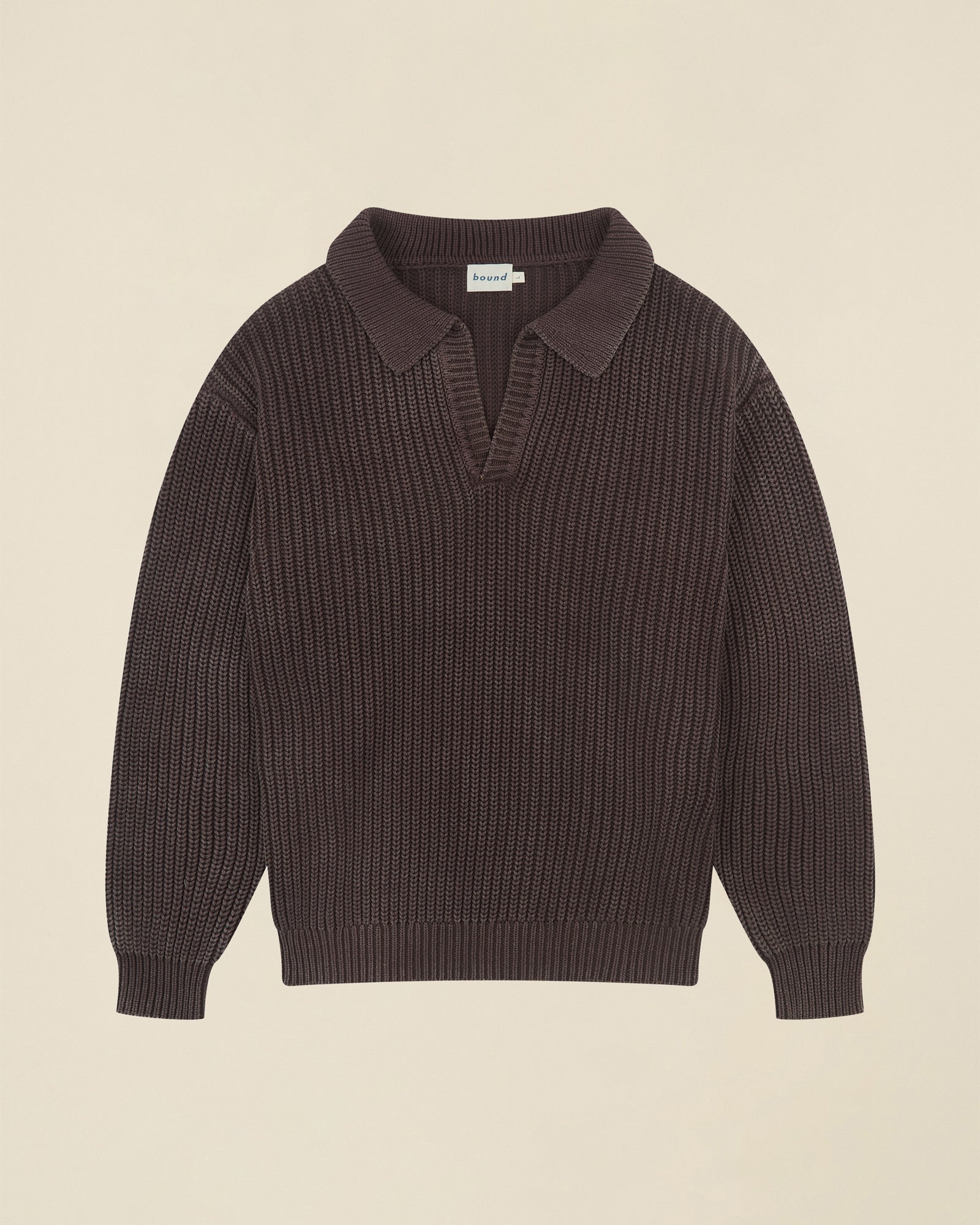 OPEN COLLAR ACID WASH KNIT - BROWN
