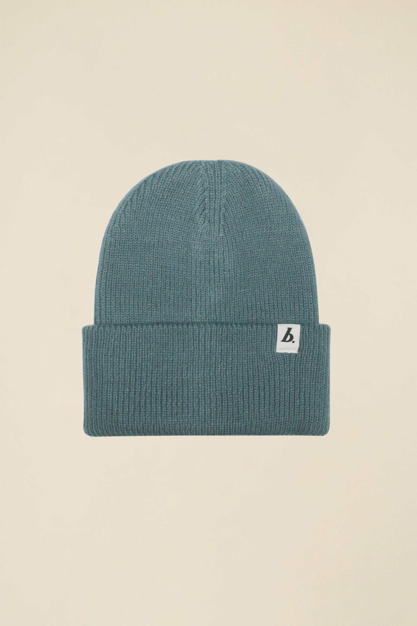 OVERSIZED RECYCLED CUFFED LABEL BEANIE - GREEN