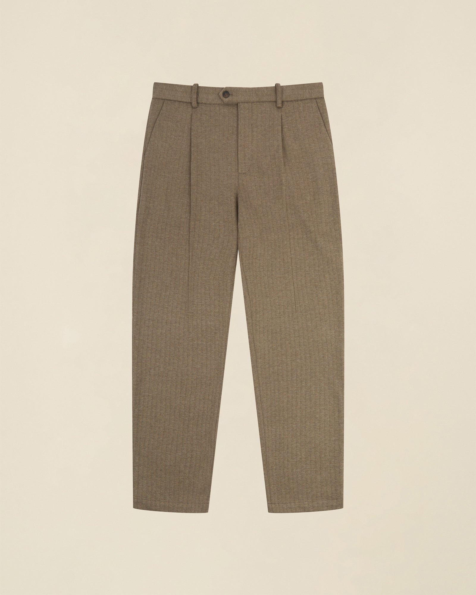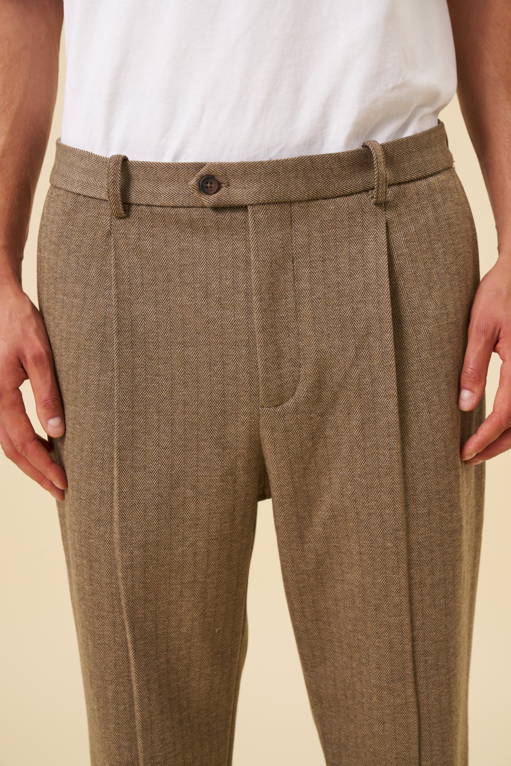 PLEAT HERRINGBONE TROUSER - OLIVE