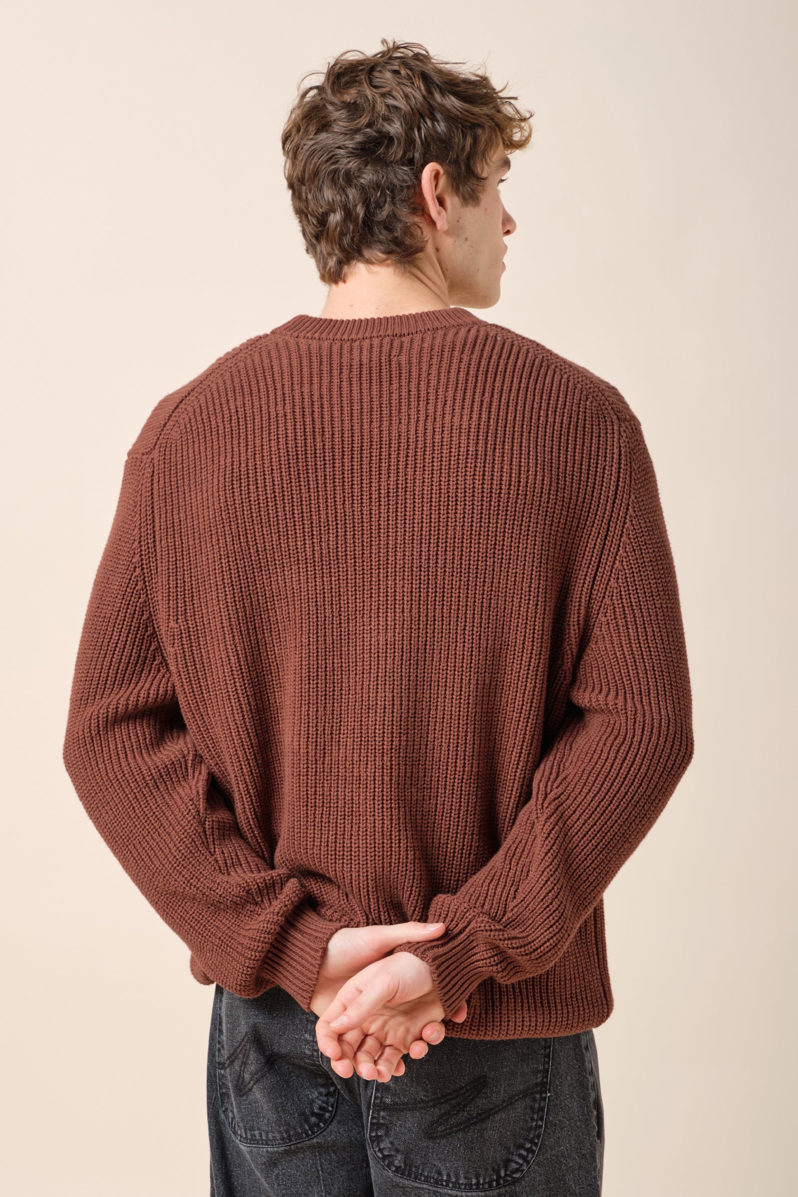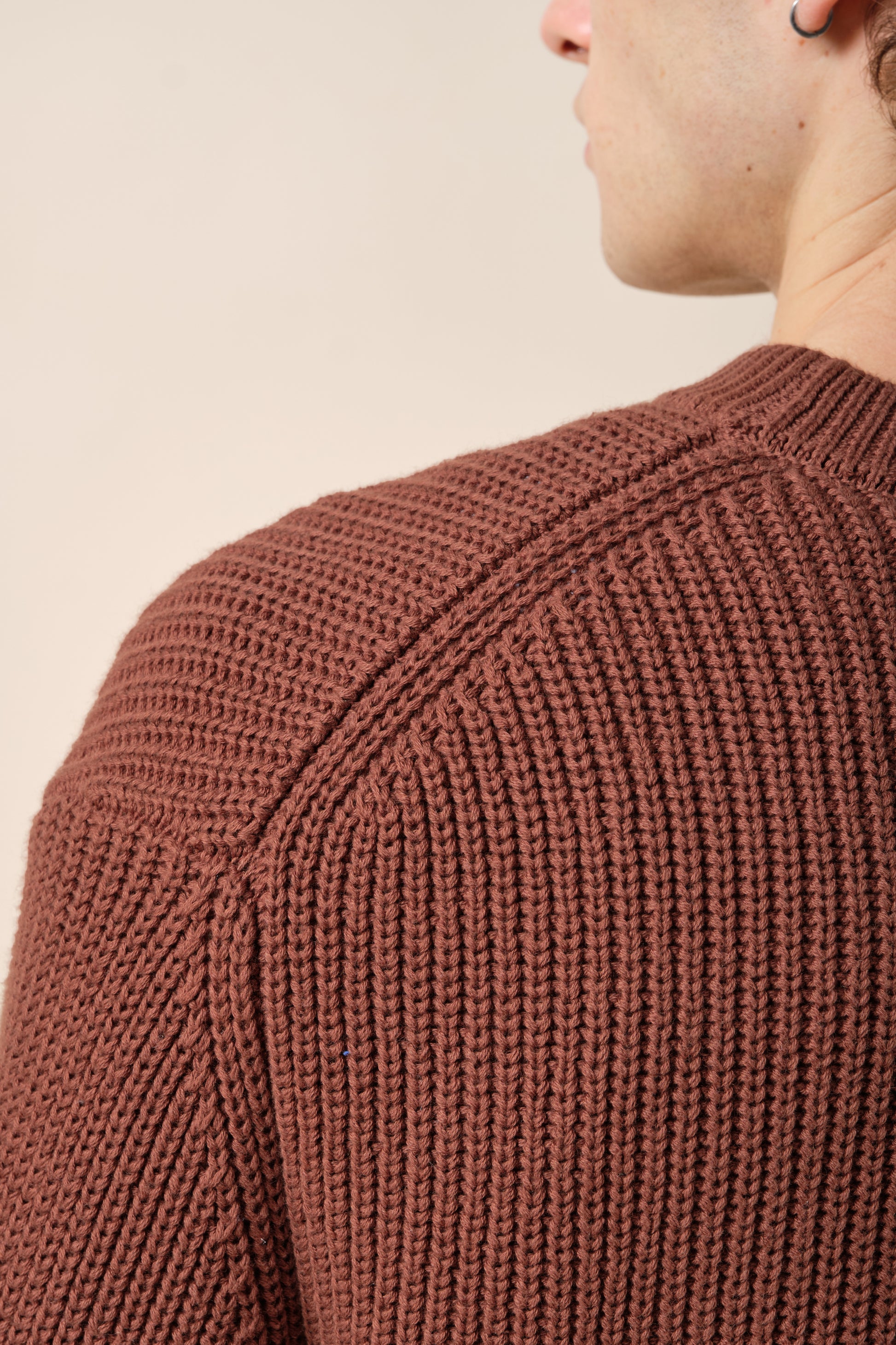 RETRO FISHERMAN RIB KNIT SWEATER - BROWN