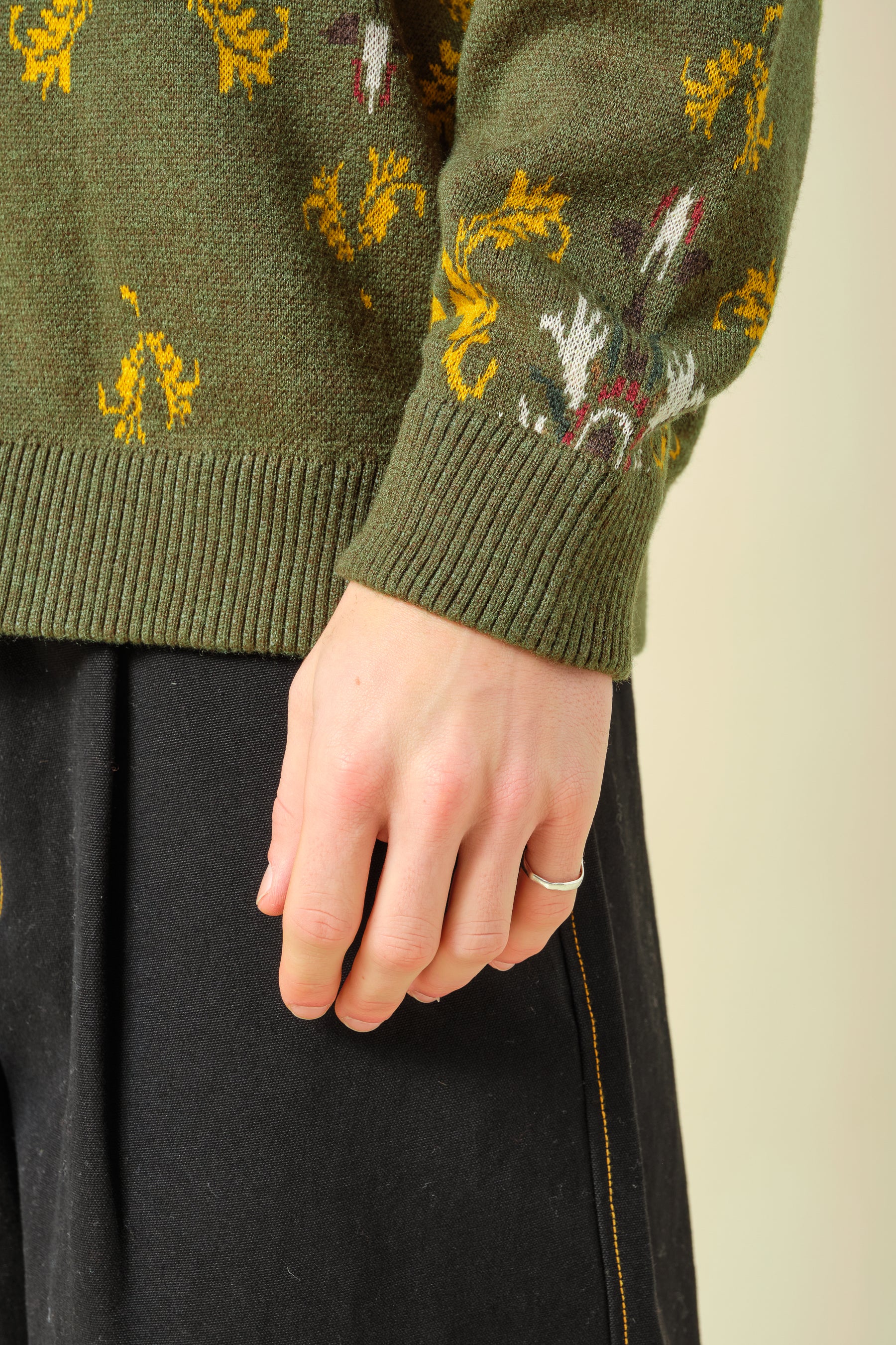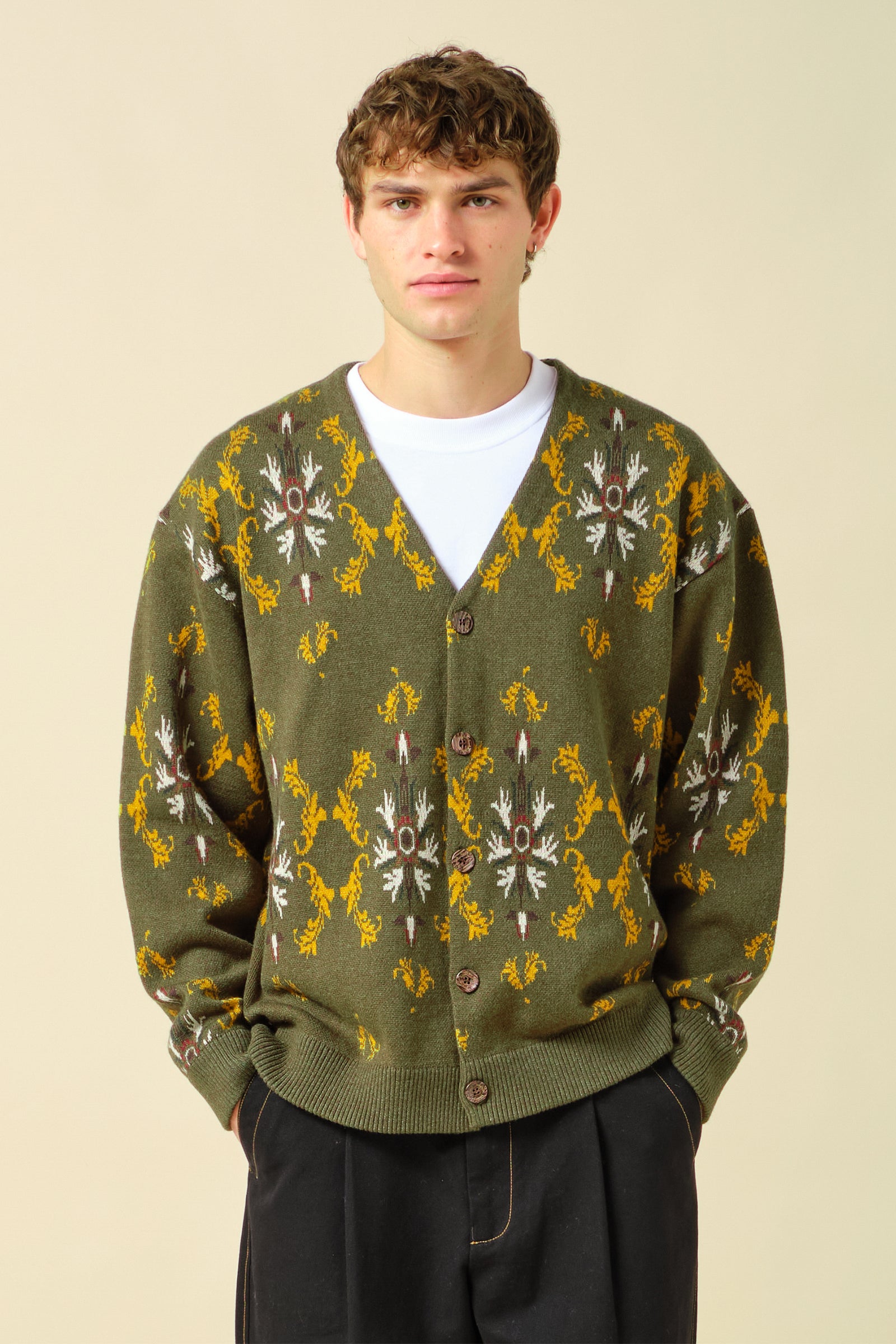 Made from a 100% Heavy Cotton Jacquard yarn, with pattern features throughout and custom engraved buttons.